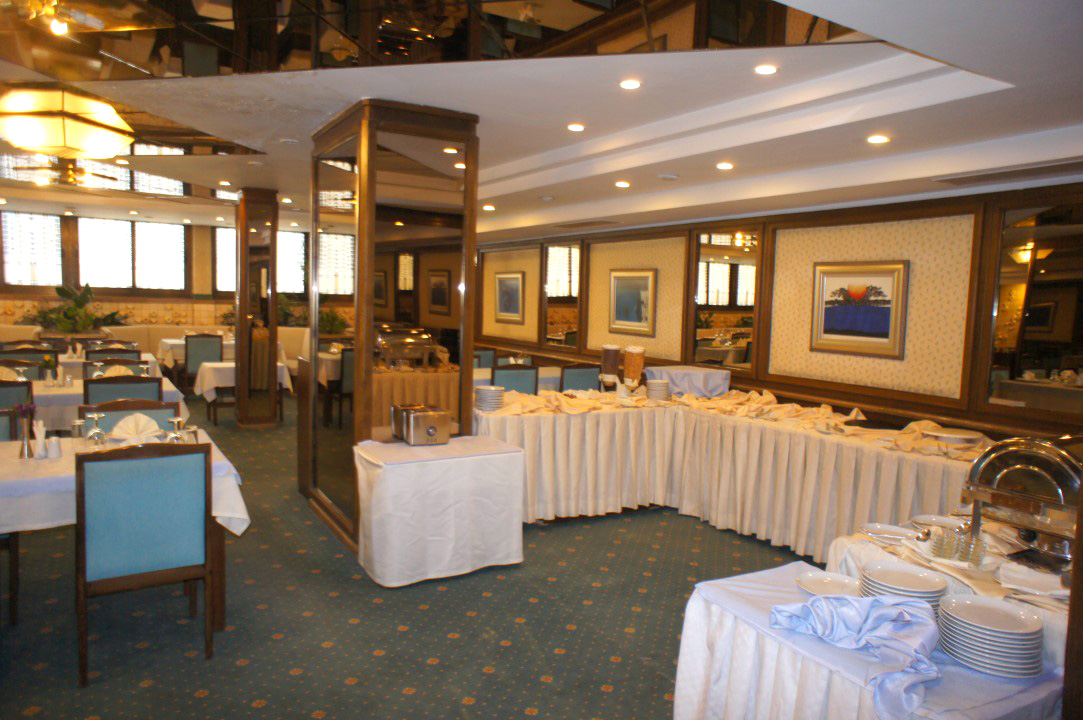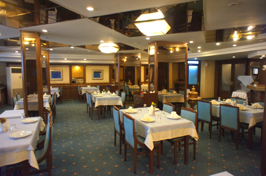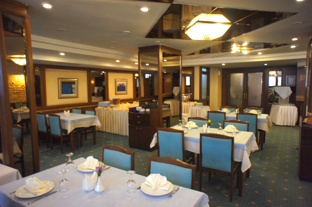 Fresh, healthy food is served for breakfast and dinner in the panoramic buffet-style restaurant. A varied menu of hot and cold drinks is available from Alfin’s bar.